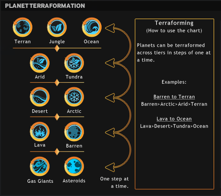 Endless Space 2 Terraforming Chart Obliterator. Recently added 32 View all 1516. Terraforming allows players to change low-tier Telluric Planets into higher-tier ones all the way from Barren to Terran.