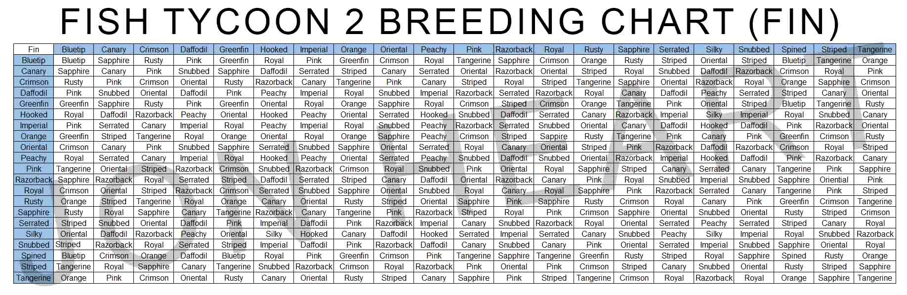 Complete combination breeding chart fish tycoon 2 virtual aquarium.