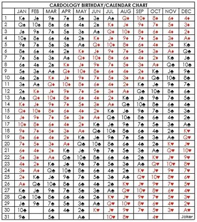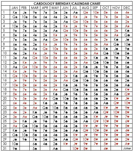 Playing Cards Birthday Chart Birthday Charts Playing Cards Tarot Cheat Sheet Birthday Cards