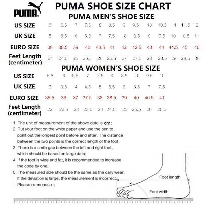 Puma shoes sizing chart. The companys early history is ripe with rivalry with Adidas s as the Adidas and Puma founders are brothers. 40 out of 5 stars. Puma shoes rely on simple and minimalistic design detailing to get peoples attention.